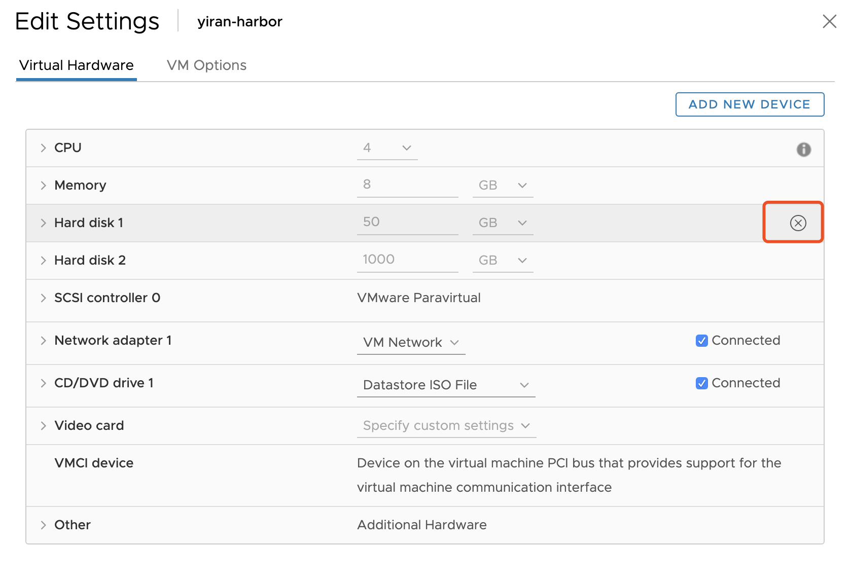 比如 Vsphere ESXi 中可以直接编辑虚拟机,在磁盘选项中有一个“移除”按钮,可以直接移除磁盘: